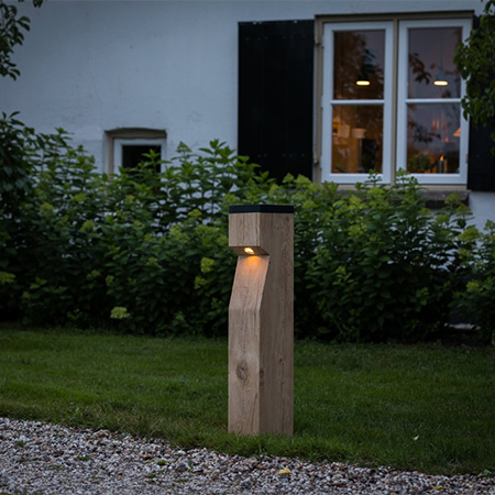 Made from certified wood and featuring an integrated solar panel and LED technology, the bollard EYE-Solar offers fully autonomous operation - no wiring required.
