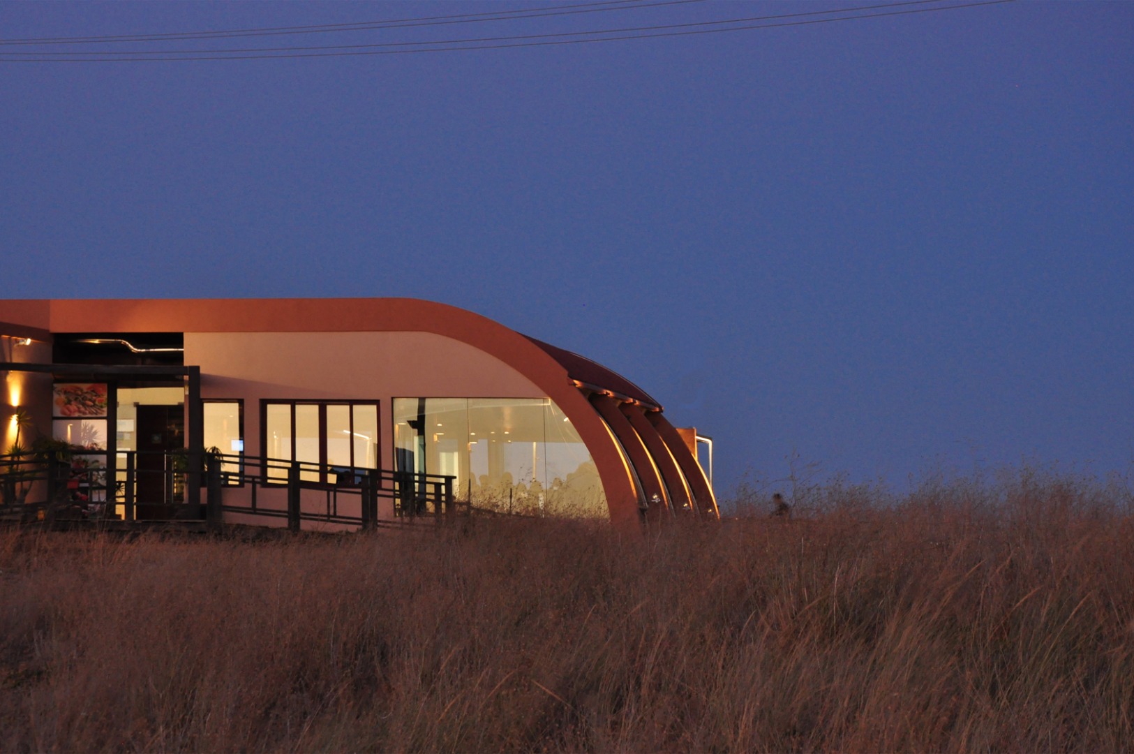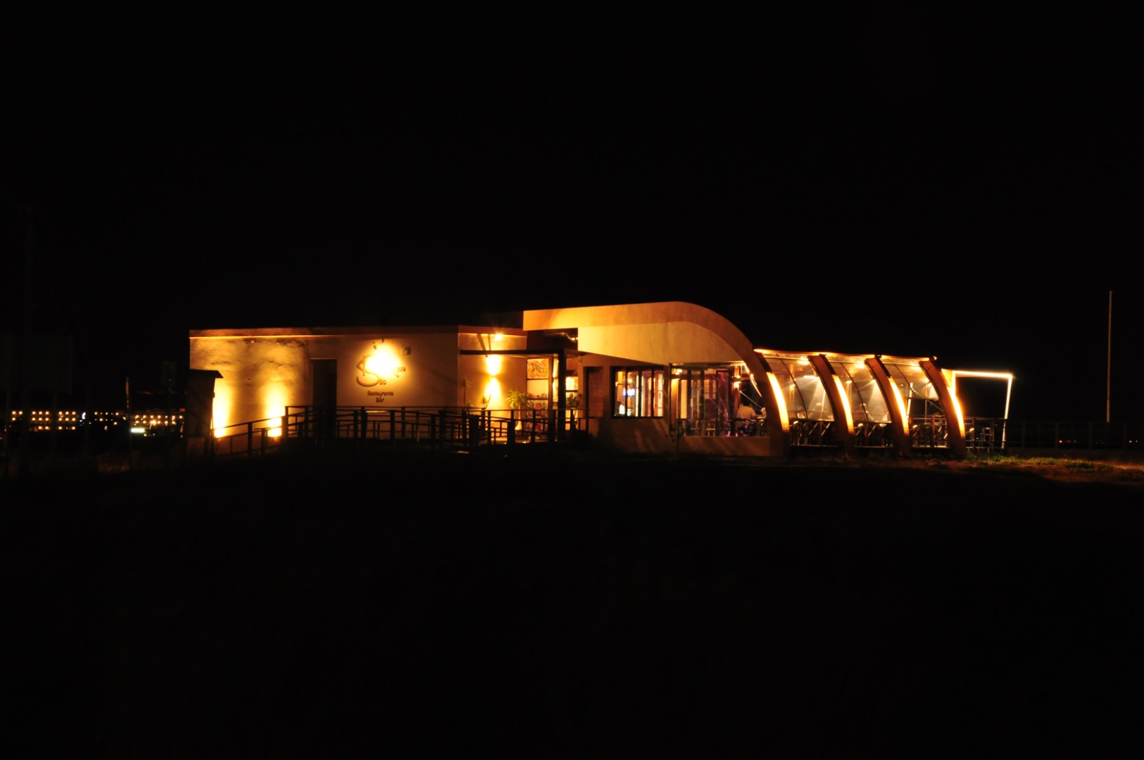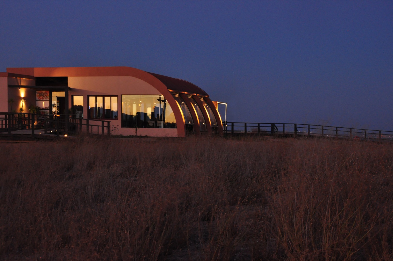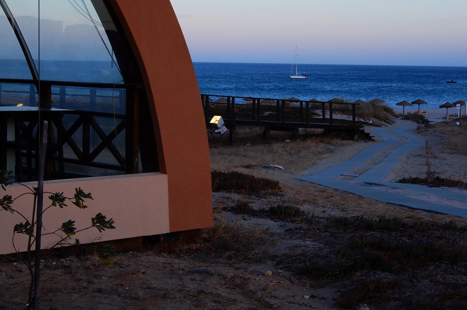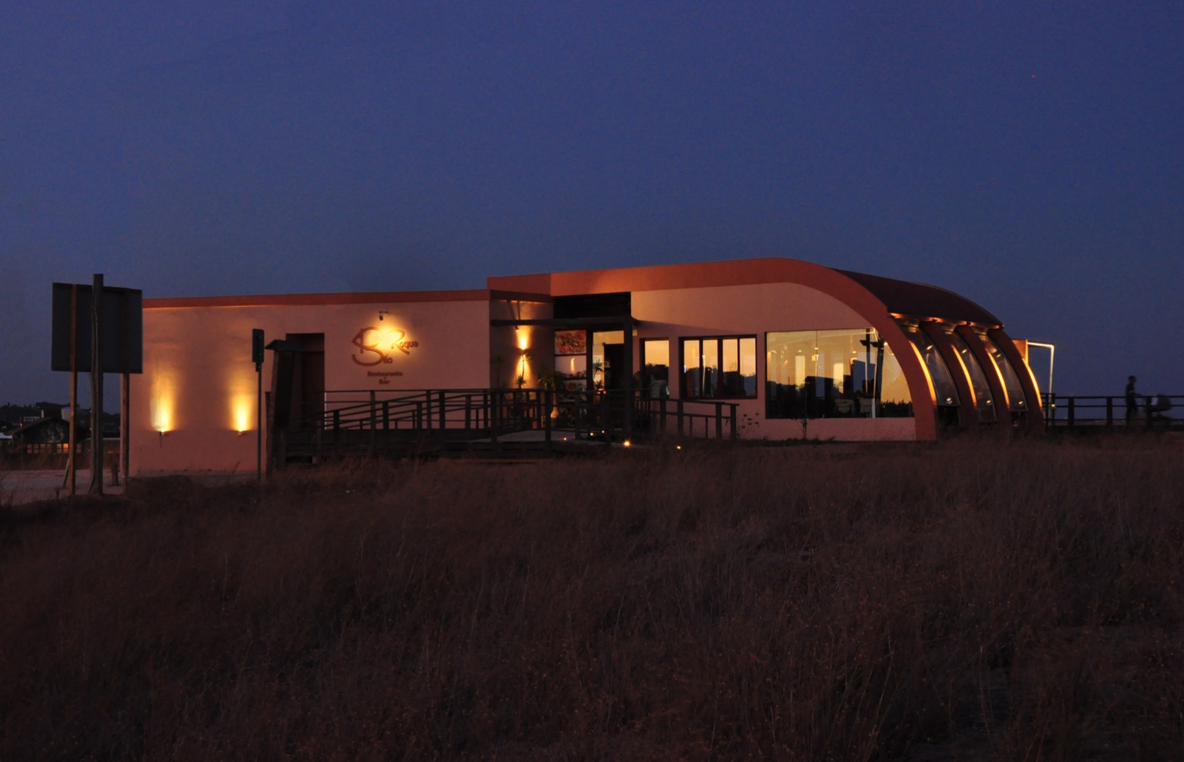 Designed as a luminous landmark, this beachfront restaurant glows warmly across the bay. The combination between its architecture and light transforms this coastline restaurant into a point of reference visible from Lagos.